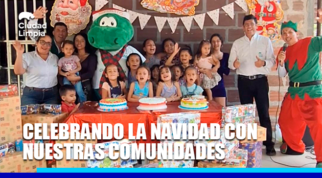 Compartimos sonrisas, dulces, recreacion y regalos con las comunidades aledañas al Relleno Sanitario Los Ángeles, con el fin de festejar la llegada de la navidad, y junto a los niños de La Mojarra, El Caimán y La Jagua recordar la importancia de la unión familiar en esta epoca del año, y asi continuar fortaleciendo los lasos de amistad y trabajo colectivo en beneficio de los habitantes del sector.